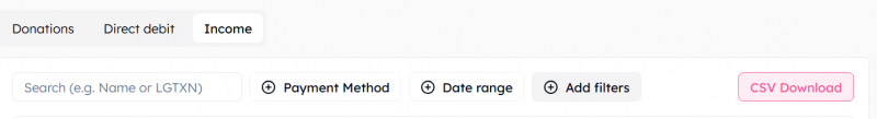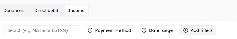 Navigate to "Donation reports", click on the "Income" tab, you'll see this: