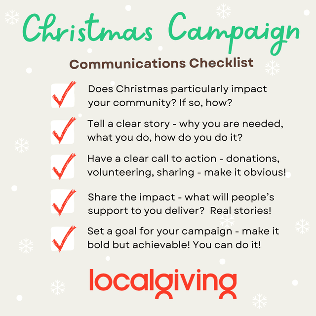 When planning your Christmas campaign, remember to keep your organisation’s story at the heart of the messaging – who you are, why you exist, who you support and the impact you make. Use quotes from people you support, and photos, videos and infographics if available.