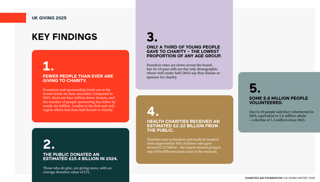 Heslop added: “To renew our culture of giving across the UK, the Government should deliver a national strategy for philanthropy and charitable giving, to support charities to deliver their life-changing work. Revitalising our culture of giving will help to build a more connected, more generous and more resilient society for all of us in the future.”